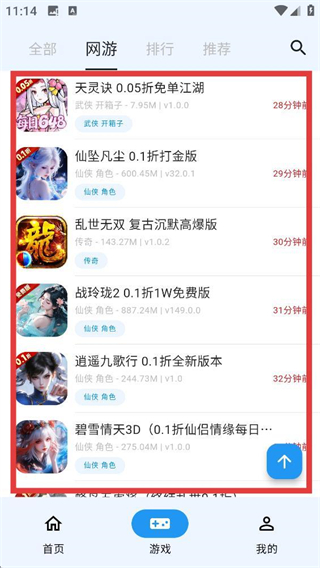 3、点击【网游】标签,就能筛选出网游类游戏列表,快速找到想查看的网游资源啦。