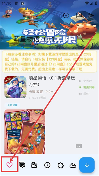 2、进入游戏详情页后,点击左下角的爱心按钮,就能把这款游戏加入收藏,方便之后快速找到它啦。