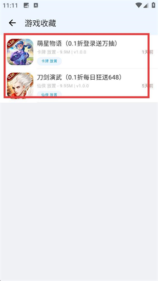 4、在【游戏收藏】页面,能看到刚才收藏的【萌星物语】,直接点击就能回到它的详情页继续操作啦。