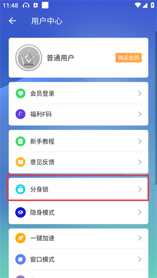 1、【小X分身】主界面点击红框标注的个人中心图标,进入用户中心页面解锁更多账号管理功能。