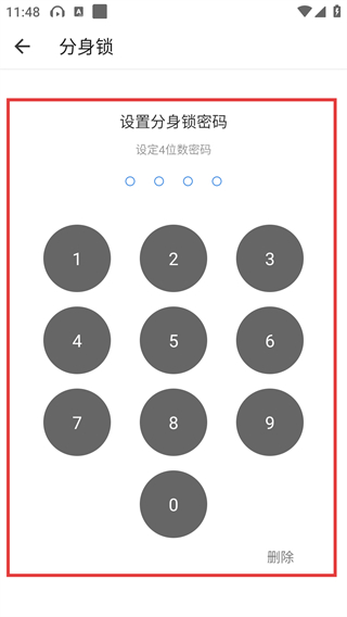 3、【分身锁】设置页需在红框数字键盘区设置4位数字密码,完成分身锁的基础密码配置。