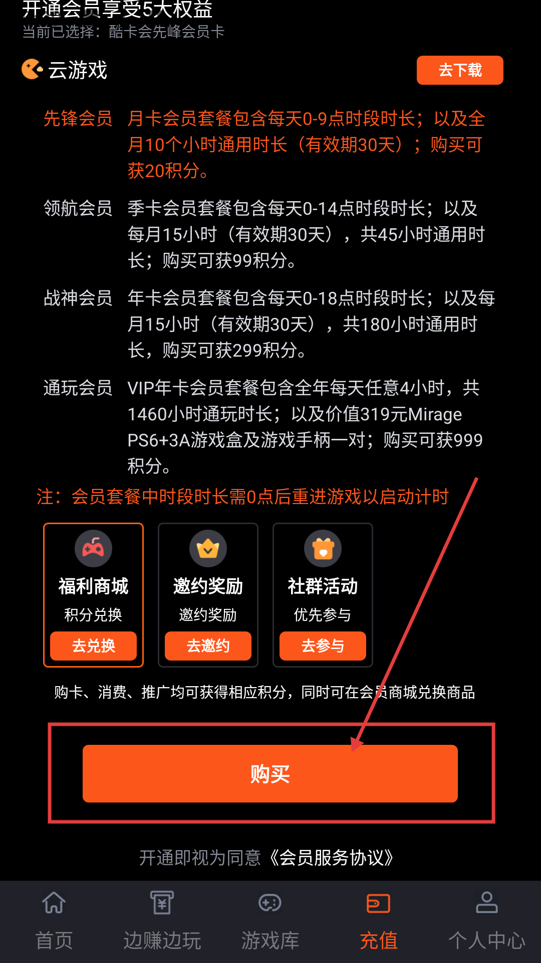 1、在首页点击【充值】,进入会员购买界面,准备开通会员享权益哦。