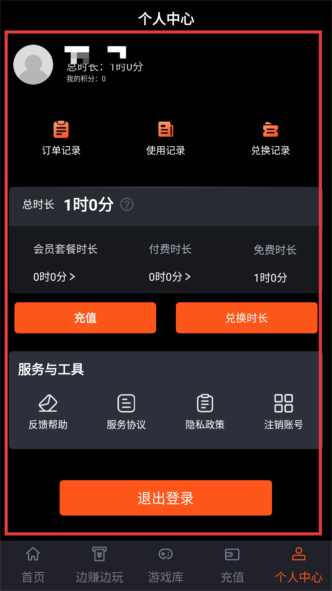4、在个人中心,可查看时长、积分等信息,还能进行充值、兑换时长等操作哦。