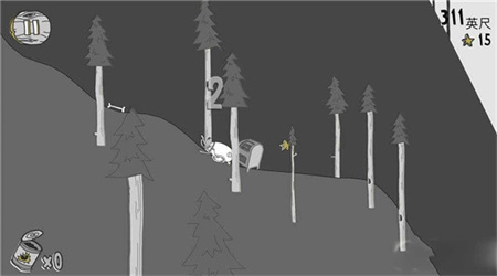 4、黑白游戏画面:每个玩家都可以快速开始,游戏的整体屏幕是黑白的,有各种轮子和增强的道具,可以帮助你跑得更远。