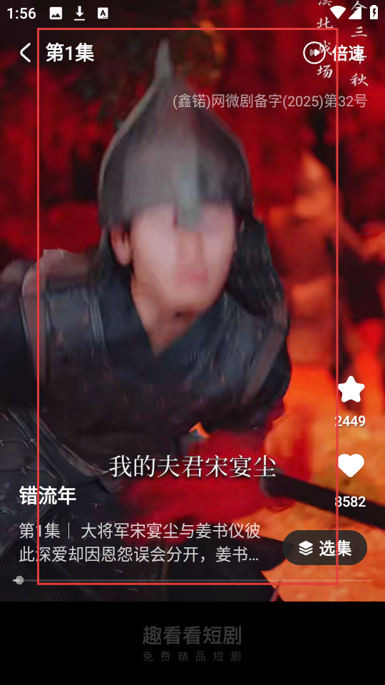 4、进入短剧播放页面后,即可观看短剧,还可进行选集、调整倍速等操作哦。