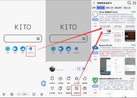 1.下载安装可拓浏览器app,之后打开,并开启权限;