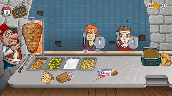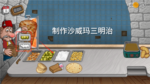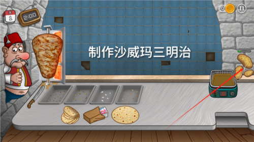4、玩家需先制作好沙威玛三明治的材料,包括肉片、黄瓜、沙拉、薯条;