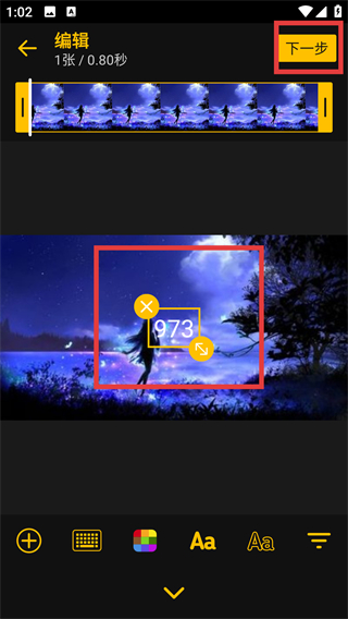 3、添加好文字后点右上角的【下一步】按钮,就能进入后续的分享或保存环节啦。