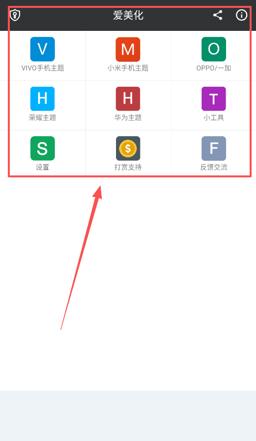 1、我们先打开爱美化这款软件,看到那么多手机品牌了吗,你得找到自己手机对应的那个选项点进去。