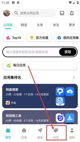 1、在平台首页点底部的【社区】选项,能进入社区界面,后续可参与板块互动或发布内容啦。
