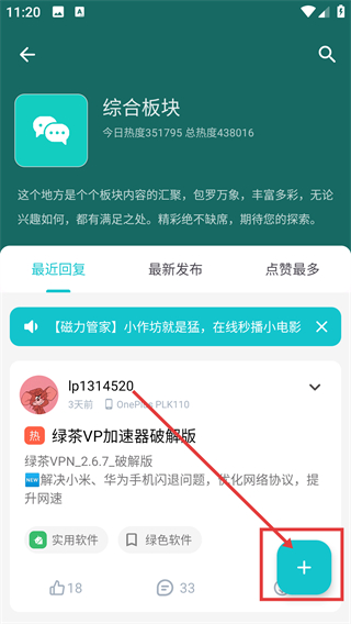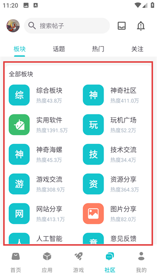 2、进入社区页后选目标板块,比如【综合板块】,点进去就能查看该板块下的帖子内容哦。