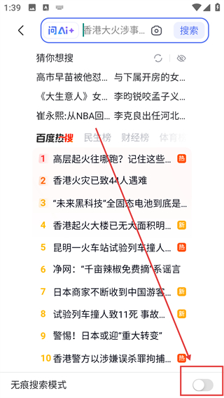 2、如果需要进入无痕浏览模式,在下方打开无痕浏览开关就可以开启了哦。