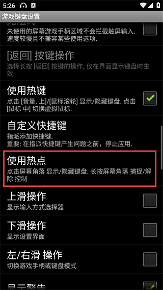 2、游戏键盘设置页面点击红框标注的【使用热点】选项。