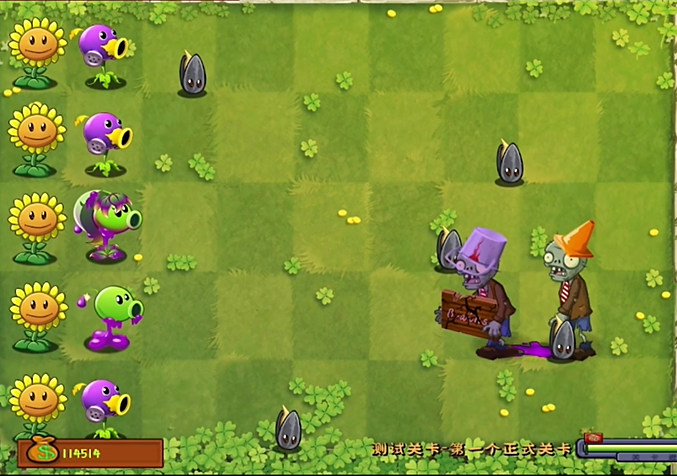 4、相较于原版植物大战僵尸,在转基因版中加入了锤子功能,相较于铲子,锤子在消除已种植的植物同时还可以触发植物的亡语效果;