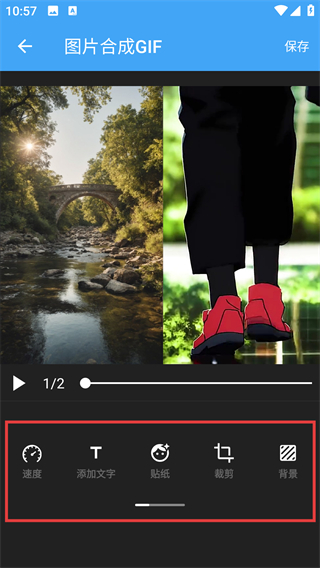 点击下一步之后,可以进行gif的速度调整、添加文字、裁剪图片大小、调整背景色、加入滤镜,甚至还可以给gif加入进度条。