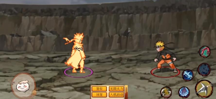 5、左边可以控制角色移动,右边有很多的忍术可以使用。