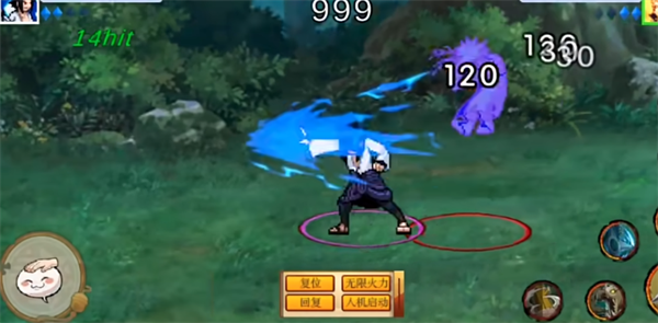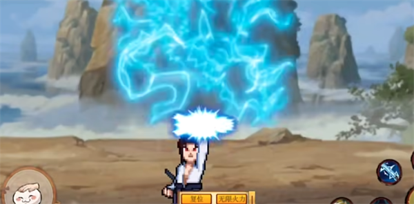 疾风佐助大幅度的激发自己的雷查克拉,并对场景内部的敌人造成大量的伤害。