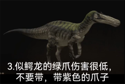 3、似鳄龙的绿爪伤害很低不要带,带紫色的爪子