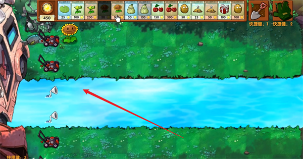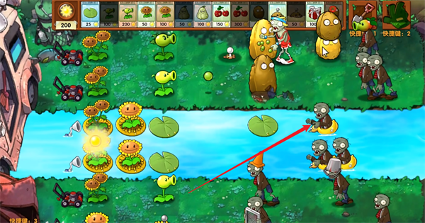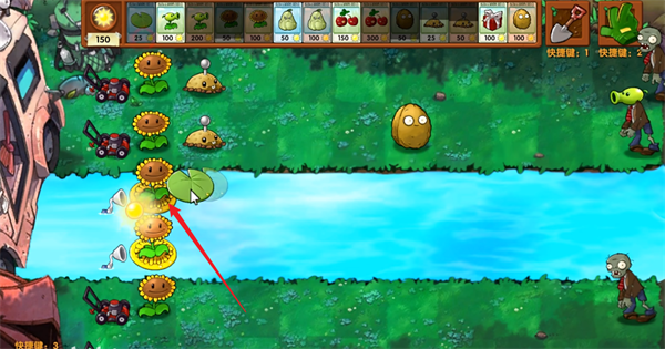 4、通过种植水生植物或者借助睡莲种植植物以此来与水池道路里面的僵尸进行作战。
