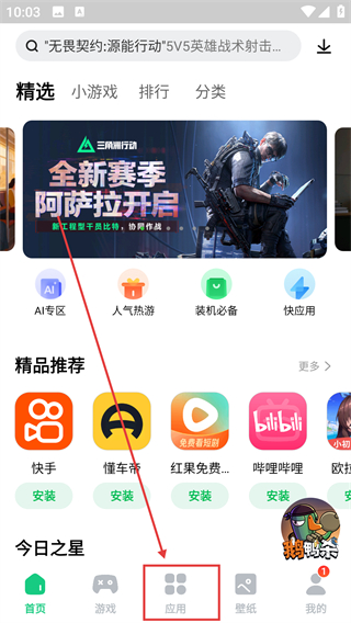 1、在应用商店首页点击底部的【应用】选项,就能进入应用分类页面,查看各类可下载的应用啦。