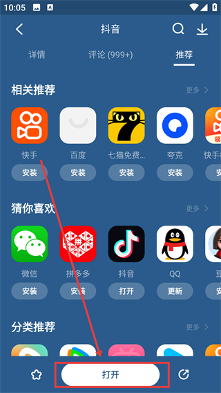 4、应用安装完成后,详情页的按钮会变为【打开】,点击它就能直接启动刚安装好的应用啦。