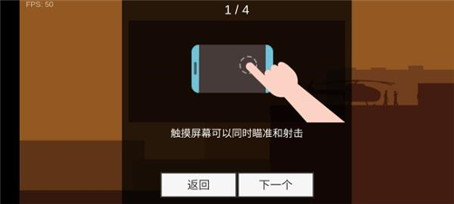 1、游戏通过触摸屏幕进行瞄准射击,并点击虚拟按键便可以移动。