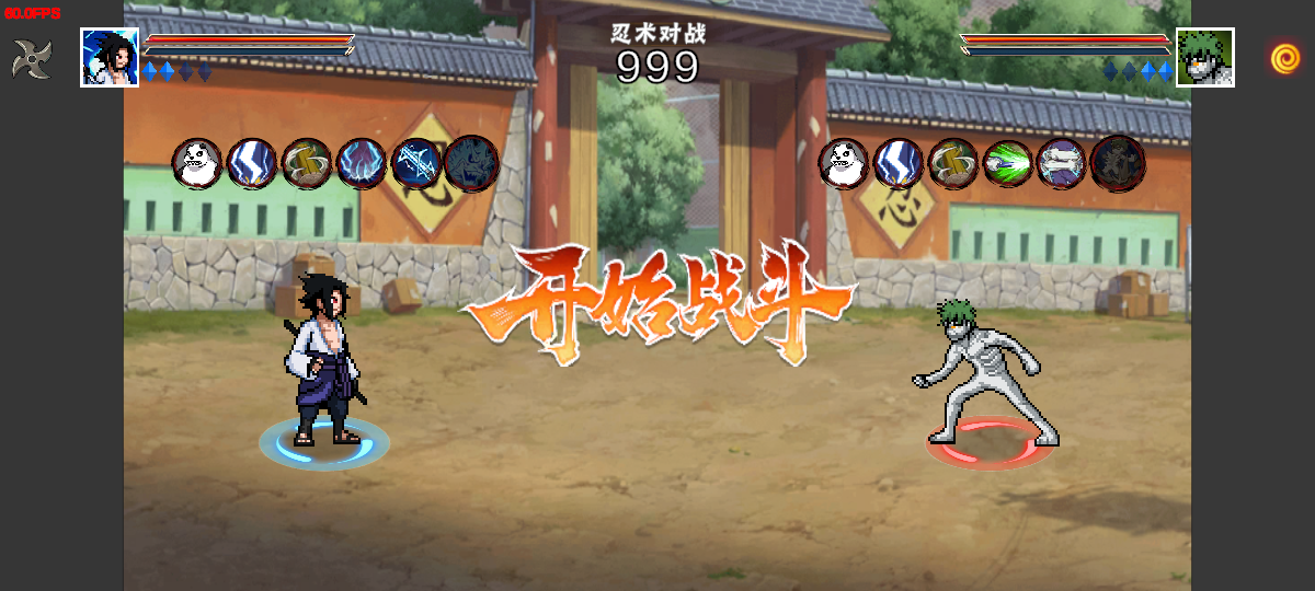 2、目前只有演练玩法,左边可以控制角色移动,右边则是各种忍术。