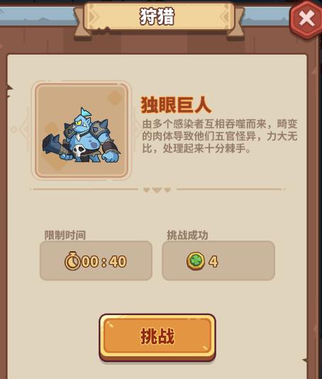 5、狩猎:局内第六波结束时,右上角会跳出BOSS挑战的按钮,点击后会召唤一个狩猎BOSS,在规定时间内击杀,即可挑战完成、获取幸运币,联合模式下一人召唤一个,每个2幸运币,总共4幸运币。需要注意的是,狩猎BOSS和关卡BOSS不同,在规定时间内没有击杀狩猎BOSS是没有惩罚的。战局不利时可以延后召唤或者不召唤,尤其是联合模式下70关之后,召唤之后容易让英雄集火在BOSS身上,从而导致小怪堆积并失败。不过延后召唤的话,下一次出现时间也会相应延后,所以前期尽量及时召唤,把握好节奏。