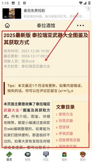 2、进入攻略页面后,选择目标攻略文章,点击即可查看内容,获取武器图鉴及获取方式等信息哦。