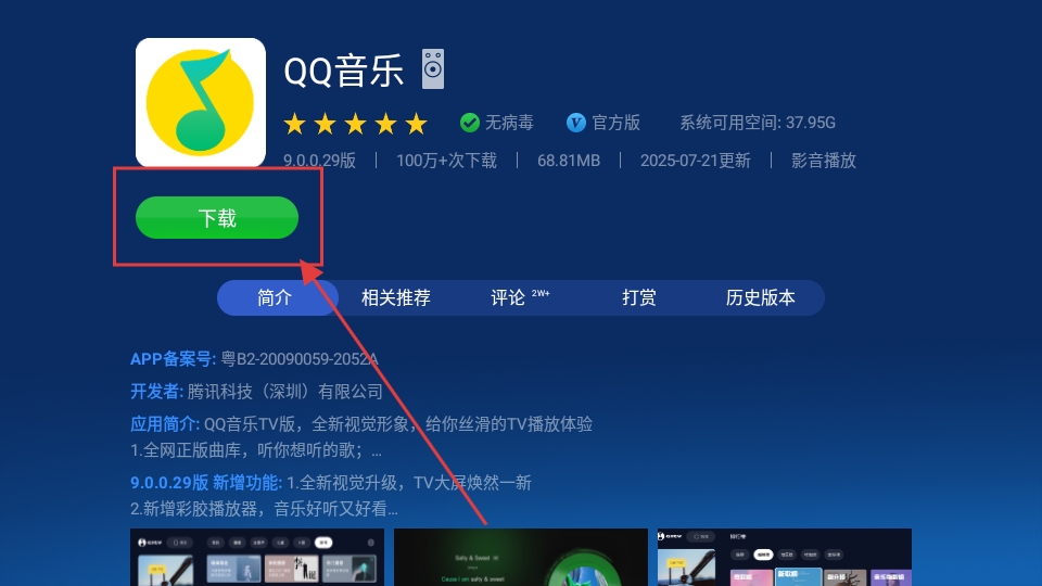 3、进入【QQ音乐】详情页,点击【下载】按钮,即可开始下载该应用哦。