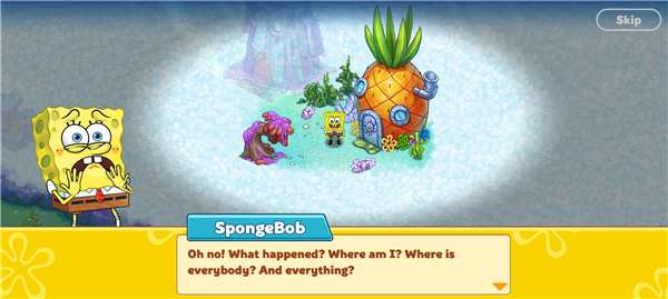 2、精美动态画面:精美的游戏画面和动画,用来提升角色的能力和战斗力,您可以自由探索海绵宝宝世界的各个地方。