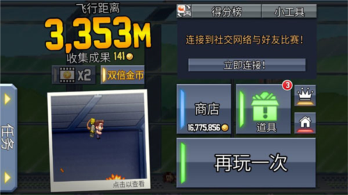3、在飞行过程中,遇到感叹号出现,需要警惕,前面会飞来危险的飞行物,那么做好准备躲避的反应,当游戏结束后,会显示收集的成果,和飞行的距离。