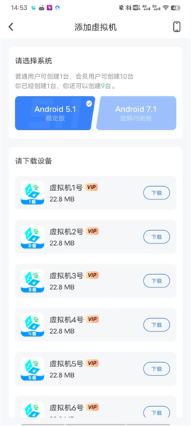 5、如果你还想要多开的话,可以点击下方的多开,下载其他的虚拟机。