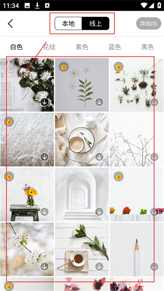 3、切换到【线上】标签页,挑选喜欢的背景素材并下载,就能把它用在图标制作里啦。