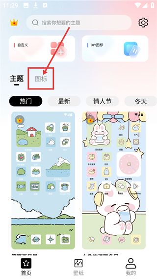 1、在APP首页,点击【图标】标签,切换到图标分类界面,可浏览各类风格的图标资源啦。