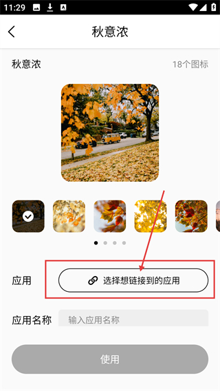 3、在图标套装详情页,点击【选择想链接到的应用】按钮,即可进入应用选择界面,关联对应应用呀。