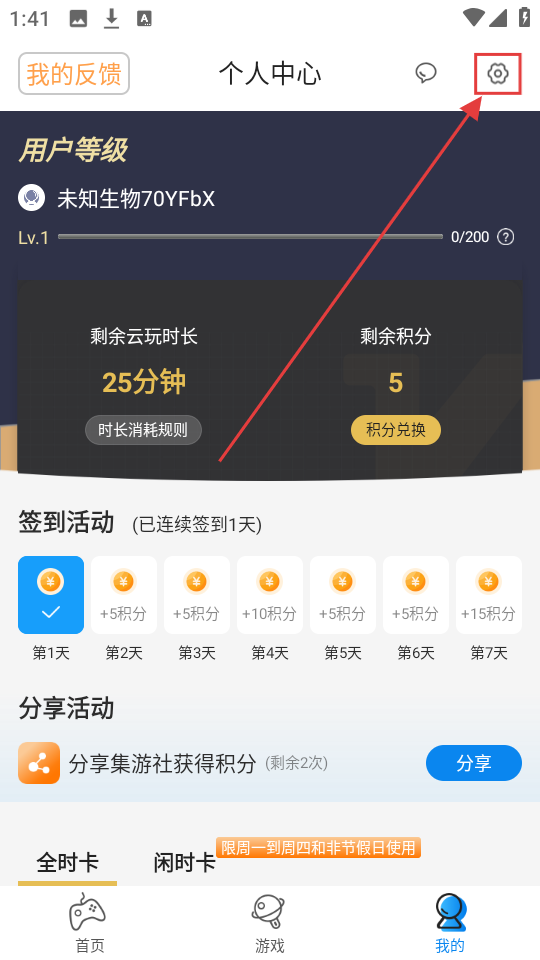 2、进入软件会自动弹出签到日历,玩家每天都可以领取金币增加自己的游戏时长;
