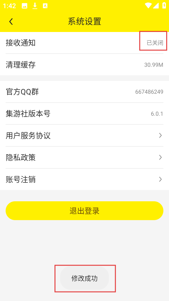 4、关闭接收通知后会提示【修改成功】,这样就不会收到应用的通知啦。