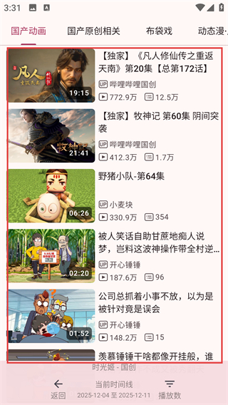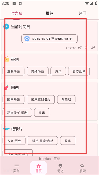 1、在时光姬页面选择【国产动画】分类,就能进入对应的内容列表页,查看相关的动画作品啦。
