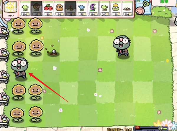 2、当僵尸将这一条路上的植物都吃掉时,走到道路的尽头之后,就会触发对应道路的婴儿车。