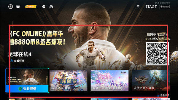 1、在游戏平台首页,看到【FC-ONLINE】嘉年华活动弹窗,点击【查看详情】能了解活动福利,也可直接浏览下方游戏列表哦。