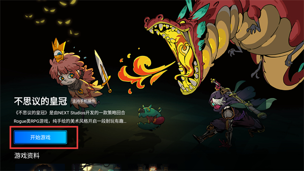 4、选中《不思议的皇冠》后,进入游戏详情页,点击【开始游戏】按钮,就能启动这款策略回合Rogue类RPG啦。