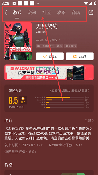 3、在游戏详情页点击顶部【攻略】标签,切换到攻略页面,可查看该游戏的相关指南哦。