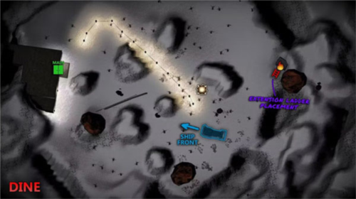 4、Assurance 保证:进入该设施的最佳路径是爬上著陆场附近的缓坡山坡,然后继续直行前往该设施的入口。离开时必须绕过这座山,因为另一边太陡了,爬不上去。可以透过爬上位于设施和船舶之间大约中间的鹰架内的高梯子,然后从大岩石上跳到管道上来到达消防出口。可以沿着管道走到尽头,在那里会找到消防出口。