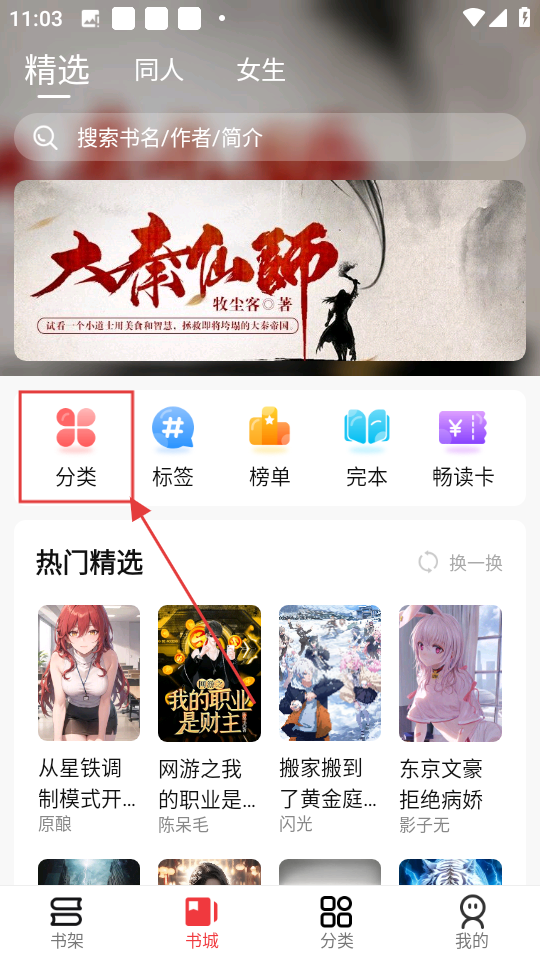 1、书城页点【分类】,进入分类页面,可挑选小说类型,超方便呢。