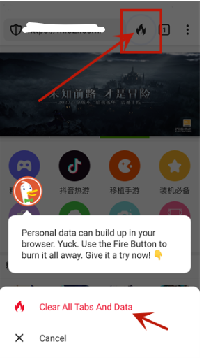 5、当你访问完一个网页后,可以点击火把按钮将个人访问数据一键全部删除,现在就试一试。