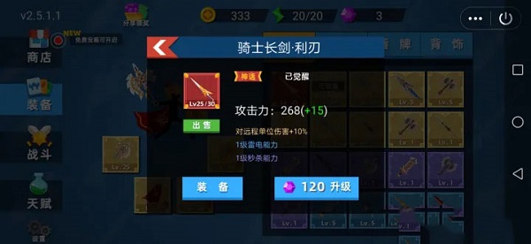 3、长剑的攻击力是很高的,在第5关时容易刷到。