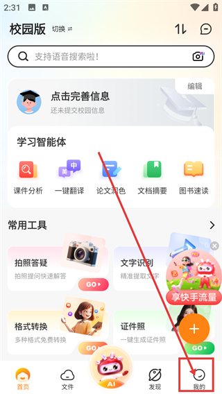 1、在应用首页点击底部的【我的】选项,就能进入个人中心页面,查看账号相关的功能和信息啦。