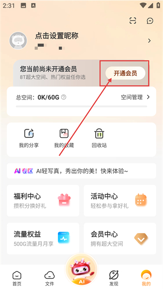 2、进入个人中心后,点击【开通会员】按钮,就能跳转到会员开通的详情页面,解锁更多权益哦。