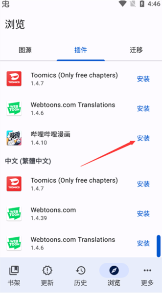 2、接下来在安装直接想要看漫画的插件。